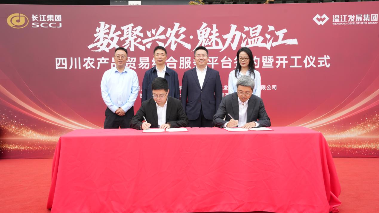 在与会领导和嘉宾的共同见证下,四川省长江集团与成都温江发展控股集团签订了战略合作协议,这标志着双方将在农产品贸易流通、供应链金融、产业人才培养等领域展开深度合作。随后,与会领导和嘉宾对四川农产品进出口园区及四川农产品贸易综合服务平台进行了参观了解。